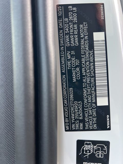 Crystal White Metallic 23/30 City/Highway MPG 2026 Volvo XC60 B5 Plus 4D Sport Utility AWD Automatic with Geartronic 2.0L I4 Turbocharged DOHC 16V LEV3-ULEV70
